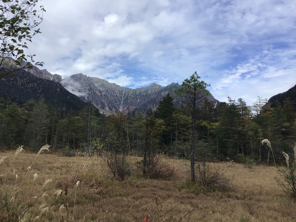 正面に見えるのは穂高連峰。