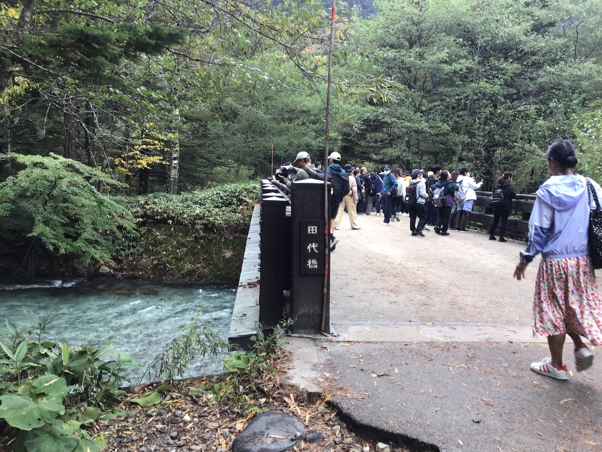 ▼田代橋。大正池と河童橋の中間地点あたりにある梓川にかかる橋。