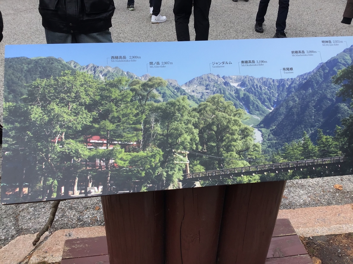 北アルプスの山々の案内板が設置。上の画像の山はこのような背景だ。
