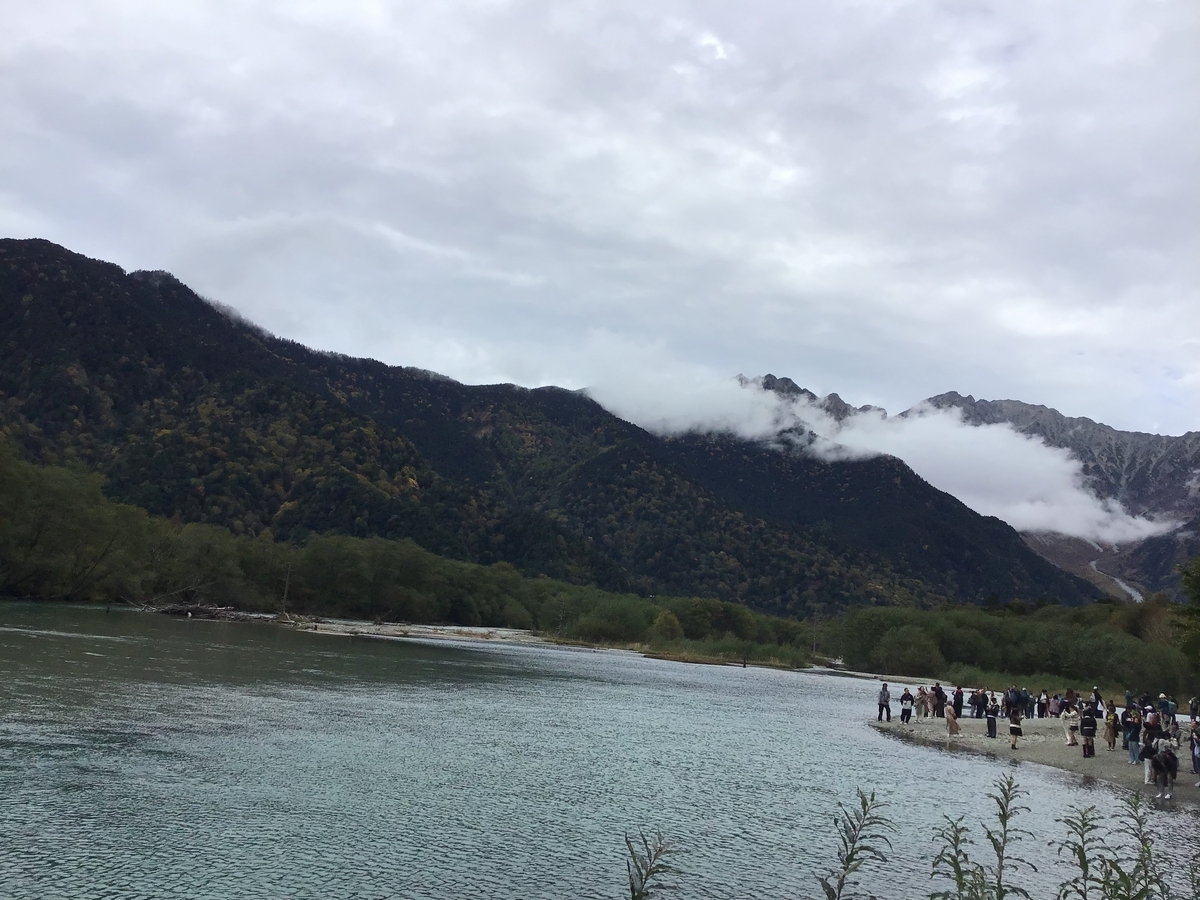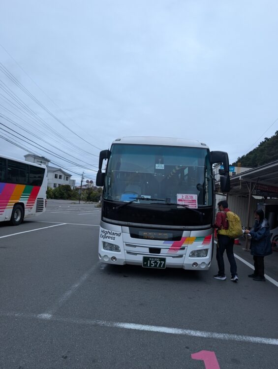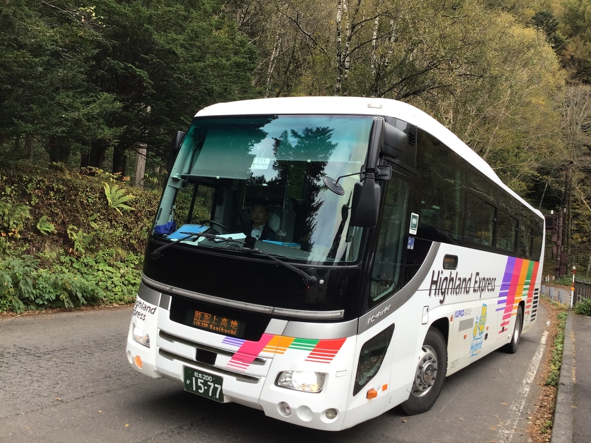 上高地行きのバスは10時40分発で全席予約制。バスの台数があまりないため早めの予約をした方がいいようだ。バスは行きも帰りも満席で当日券は完売していた。新島々駅から上高地までの所要時間は約1時間。