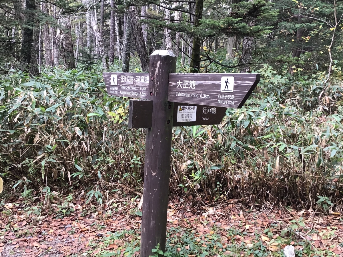 大正池から河童橋まで3.5km。明神池までは7kmで2時間の散策コース。