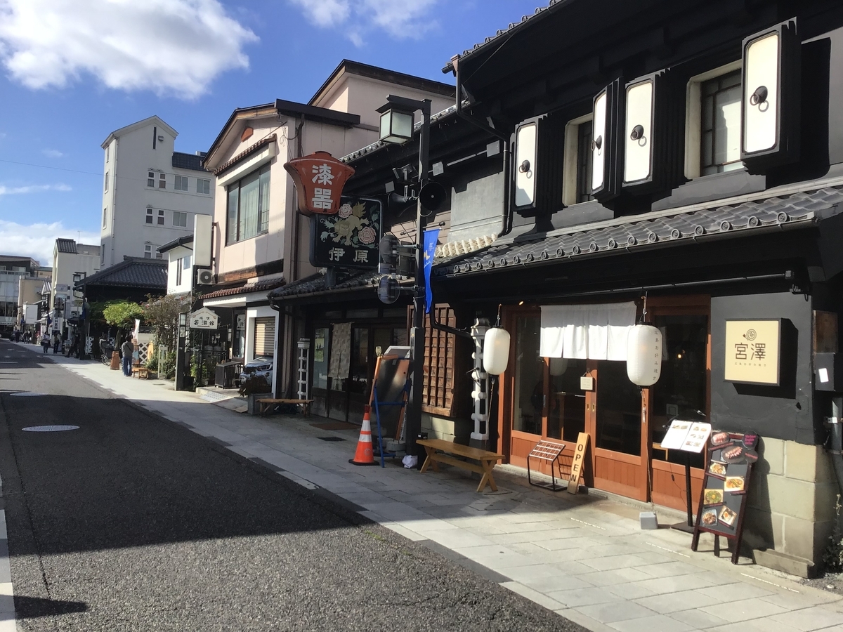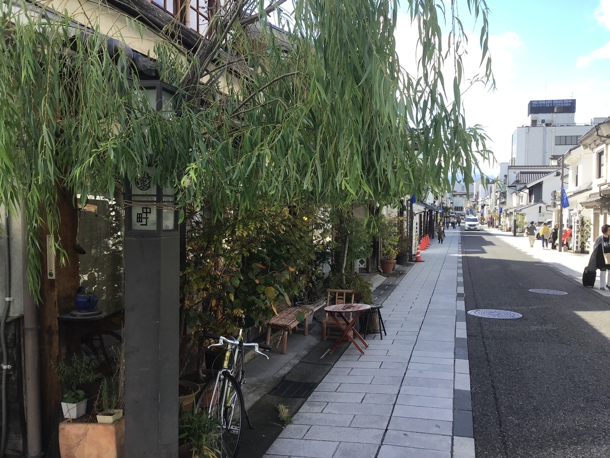 縄手通り。市内女鳥羽川沿いにある、昔懐かしい街並みの下町情緒あふれる露店街。