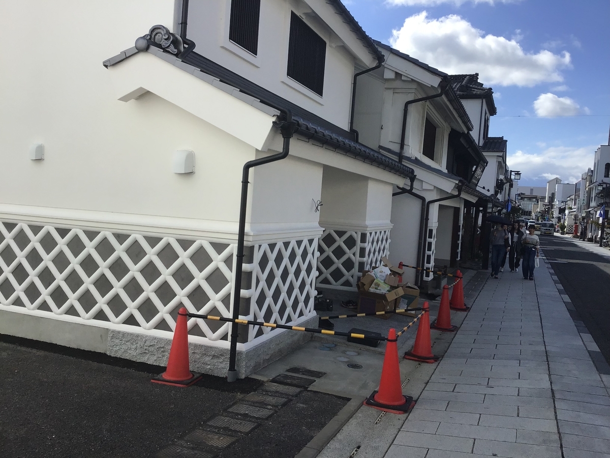 中町通りは、白壁となまこ壁の土蔵が立ち並ぶ、時代を遡ったような風景が広がる通り。江戸時代や明治時代、この一帯が大火に見舞われ、主要な施設や町屋が多数失われた。火災から建物を守るため商人たちの知恵で、なまこ壁の土蔵が造られ、現在の街並みが引き継がれている。
