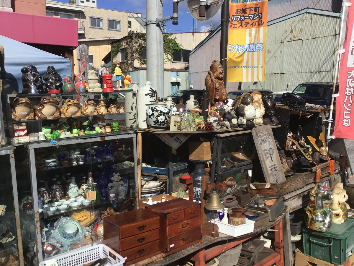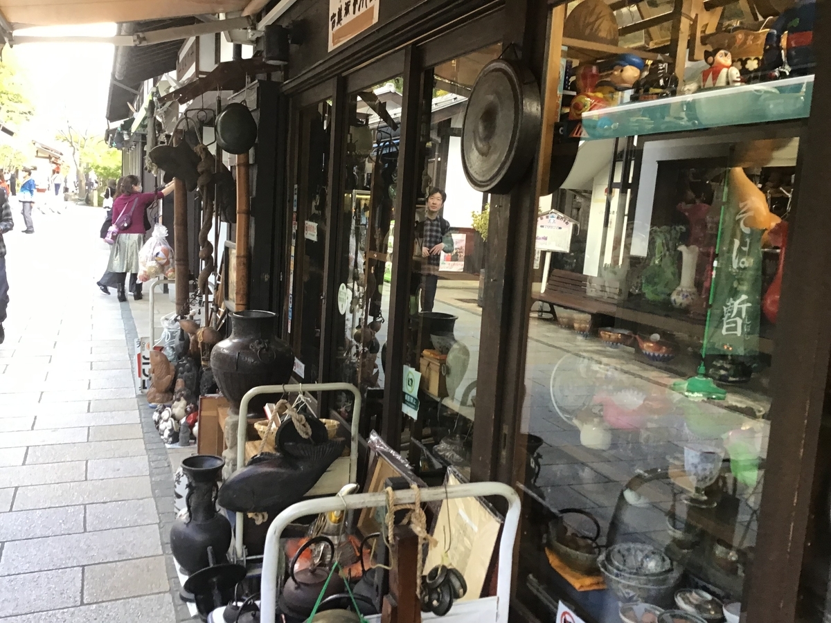 雑貨店や骨董品店ではカエルグッズを販売している店が多い。